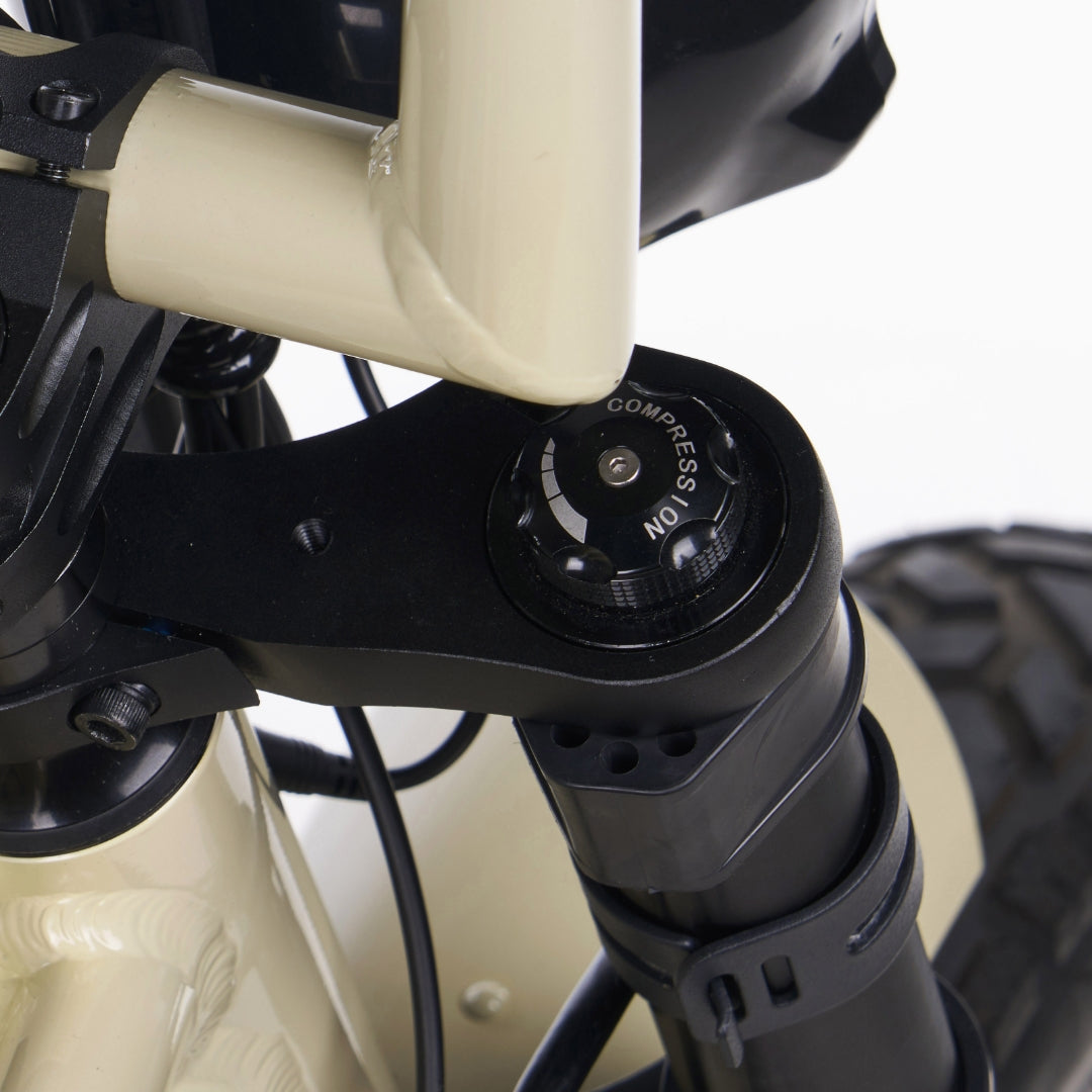 Featuring an adjustable air compression fork mechanism that brings a new level of customization and performance. Enabling precise control over the responsiveness, providing a smooth and comfortable ride over bumps, jumps and rough terrain. With its adjustable settings, riders can effortlessly modify the suspensions stiffness and travel to optimize performance for different riding disciplines.